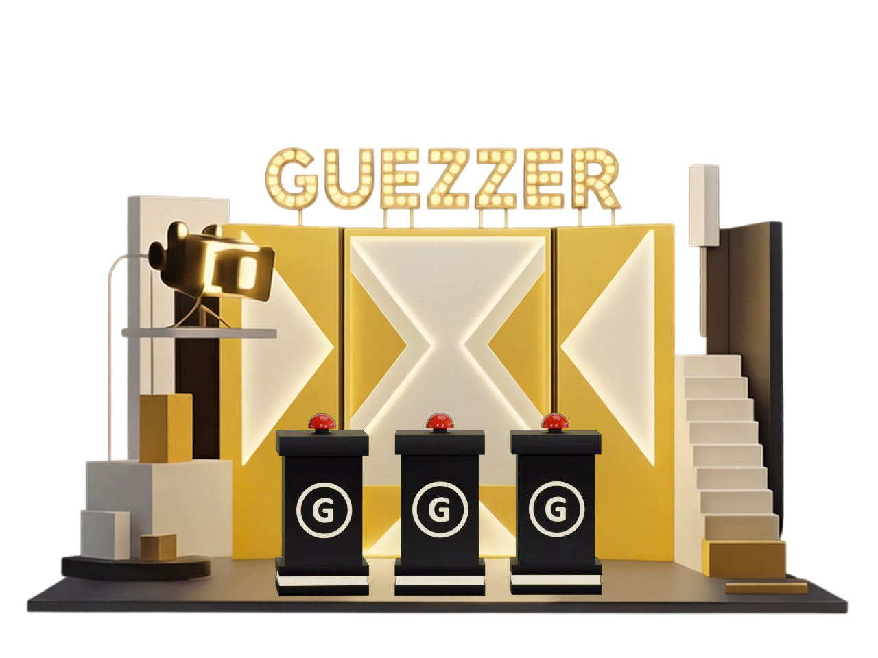 Guezzer stage with three buzzer podiums